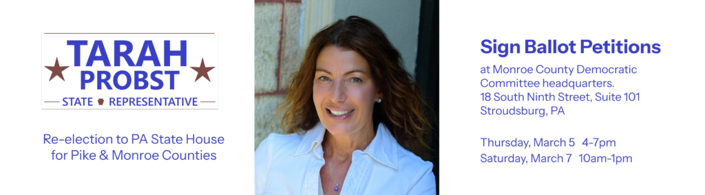 - Tarah Probst for PA State RepresentativeRunning for re-election for the 189th District that includes Delaware, Lehman & Porter Townships of Pike County, PA Tarah Probst is a lifelong northeastern Pennsylvanian and the State Representative for Pennsylvania’s 189th District, serving parts of Monroe and Pike counties.